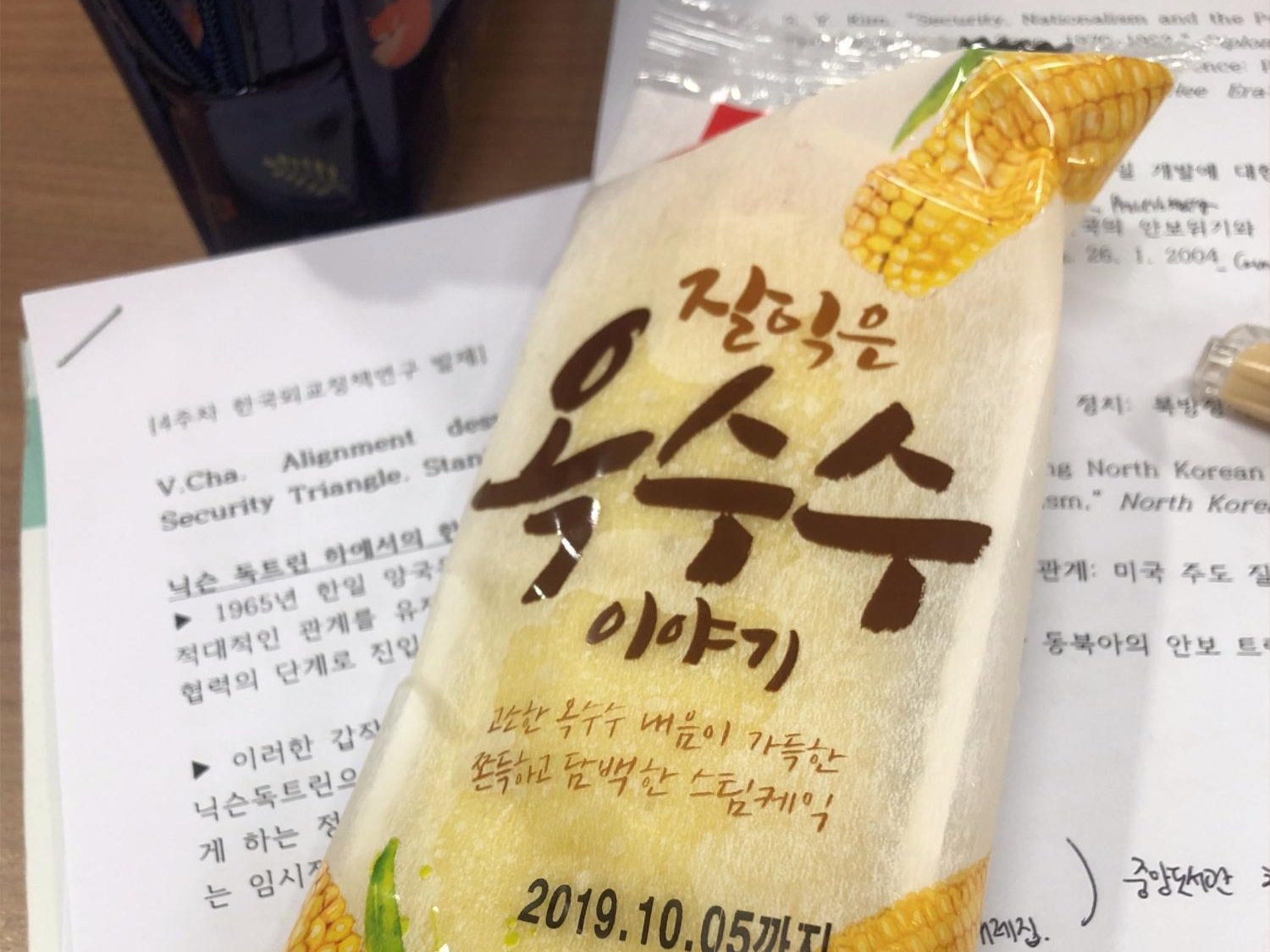 이건 아침수업에 배고플까봐 경영대 매점에서 사간 인절미